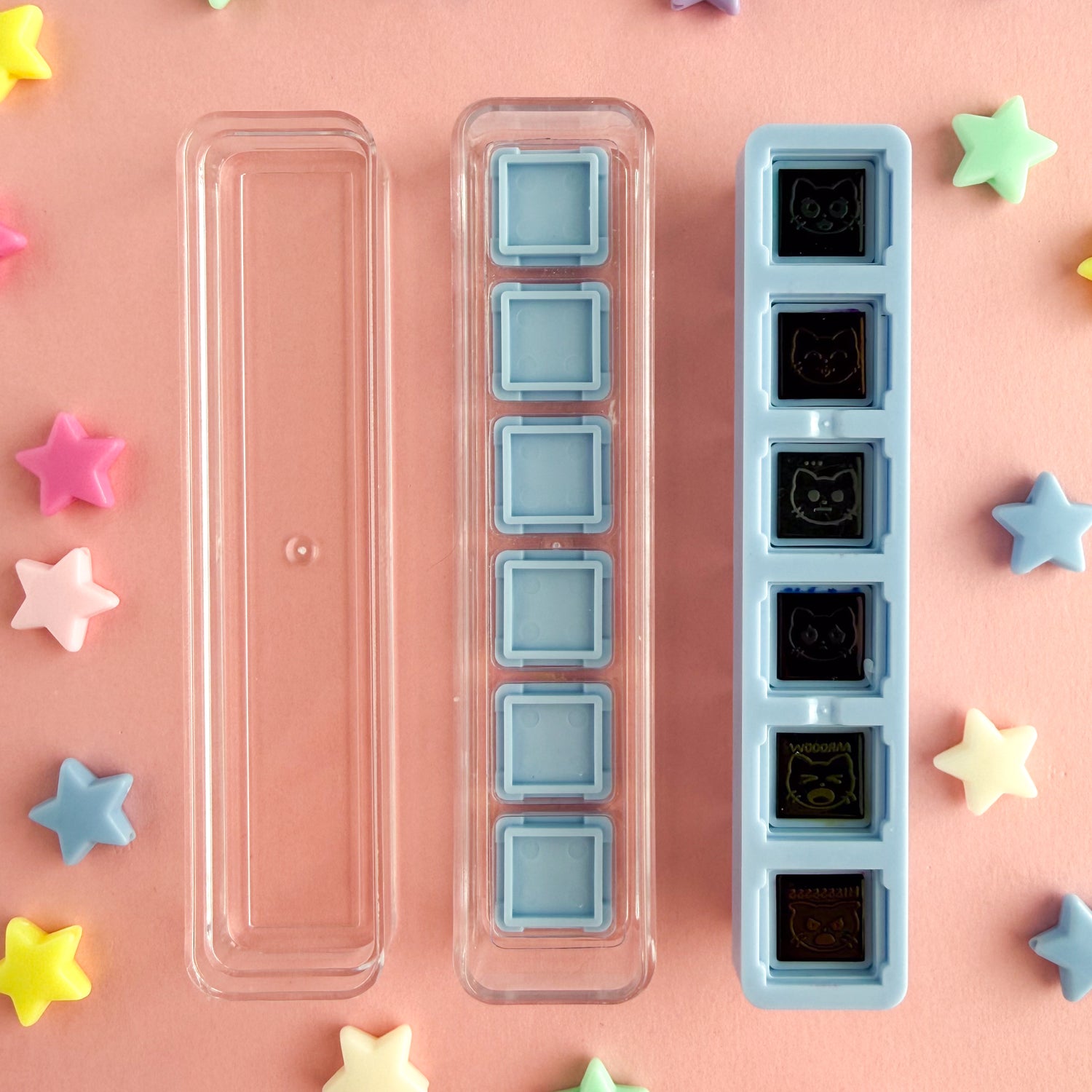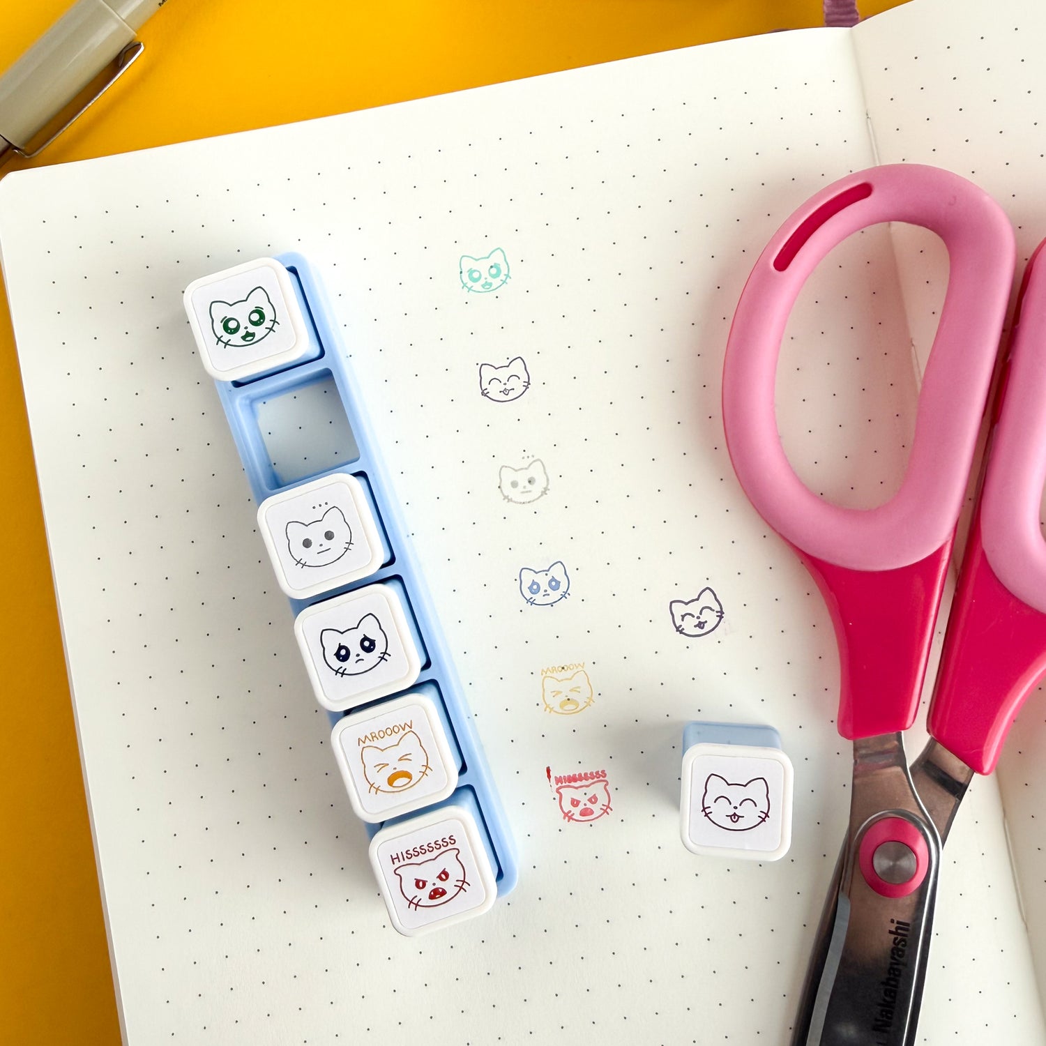 Use these adorable cat stamps to create a cute and easy to use mood tracker in your journal! It's more fun to track that you're having bad day when you get to indicate that with a little Hissing Cat! Just push the button to place a kitty doodle on your paper! These cats can be used all in a line or you can pop out each individual button to mix and match as you please.